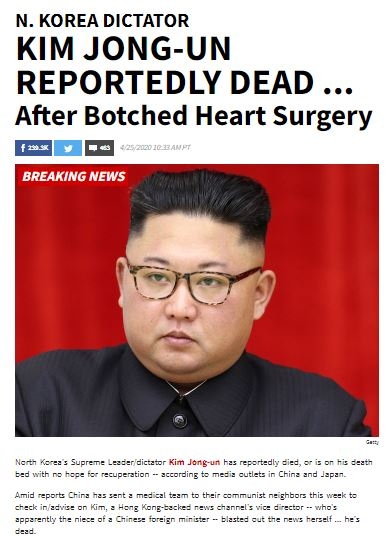 Засилват се спекуалциите, че Ким Чен-ун e починал или е на смъртното си легло, без надежда за възстановяване. Американската телевизия TMZ обяви, че върховният лидер на Северна Корея - диктаторът Ким Чен Ун е мъртъв.