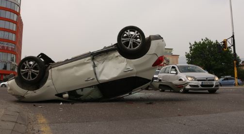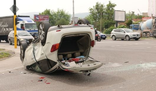 Единият от автомобилите се е преобърнал по таван. За щастие пътният инцидент се е разминал без сериозно пострадали и без жертви.