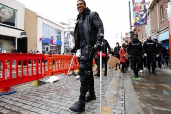Вчера, също с патерици, в протеста се включи и боксовата легенда Антъни Джошуа.