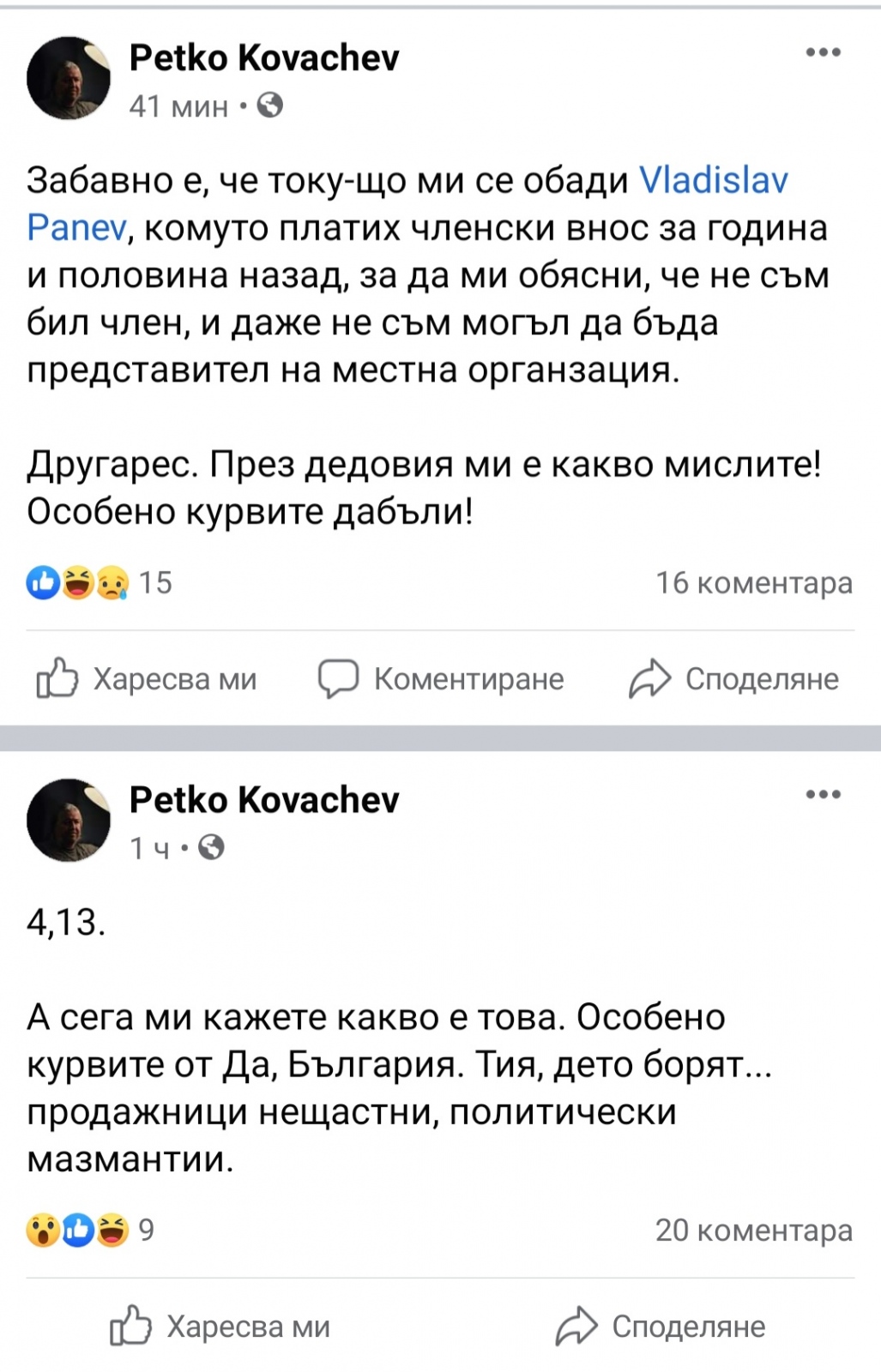 "Да, България" са нещастни продажници - политически мазмантии". Това са най -меките изрази, с които Петко Ковачев, учредител и активист на "Зелено движение" нарича коалиционните партньори от Да, България. Постът му взриви фейсбук и е гарниран с още доста цветущи изрази, като един от тях е, че дабълите са к....ви.