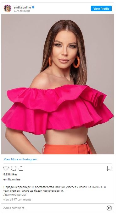 „Поради непредвидени обстоятелства, всички участия и изяви на Емилия на този етап се налага да бъдат преустановени.