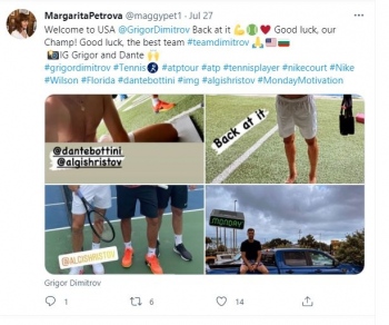 30-годишният българин не е играл от началото на юли, когато отпадна във втория кръг на "Уимбълдън". Заради травма в гърба той отказа участие в няколко турнира.