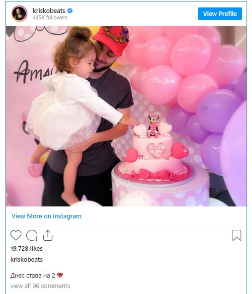 Дъщерята на рапъра Криско Амая стана на 2 годинки. Това разкри певецът, публикувайки сладка снимка на двамата с празничната торта в Instagram.