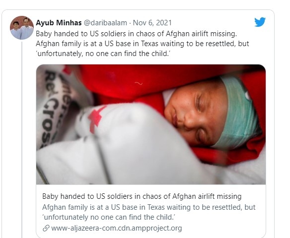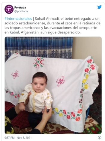 Представител на американското правителство, който е запознат със ситуацията, каза, че за случая са били сигнализирани всички агенции, които имат отношение, включително и американските бази и обекти зад граница. За последно детето е било видяно по време на предаването му на американски войник в хаоса на летището в Кабул, но "за съжаление никой не може го да открие", каза той.