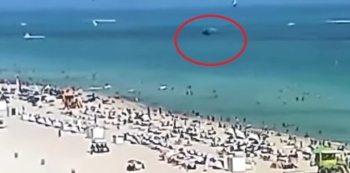 Хеликоптер се разби край плаж, пълен с почиващи в Маями. Запис от охранителна камера показва как машината пада във водата, на няколко метра от пясъка. Въпреки че точно там има плажуващи, на земята не е пострадал никой.