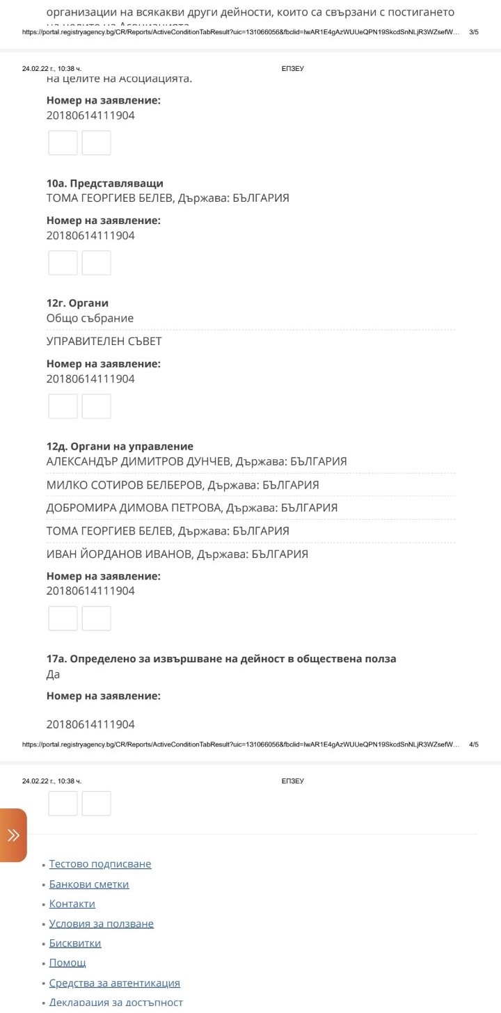 След Тома Белев и депутатът от ПП Александър Дунчев е в конфликт на интереси. Двамата зелени активисти заедно управляват частното сдружение "Асоциация на парковете в България". Това става ясно от извадка в Агенцията по вписванията. АПБ въпреки, че е НПО е собственик на десетки имоти в цяла България, oтделно е усвоявало милиони по различни поръчки. Само от швейцарски фонд взимат 4,9 милиони франка уж да се стимулира екологично земеделие. Но парите отиват основно за семинари, тимбилдинг, хонорари на лектори и медии. Участвали са и в поръчки за местене на лалугери, гледане на лешаяди, броене на риби и птици. Сега Белев е зам.министър на екологията, а Дунчев депутат, бивш шеф на Агенция по горите. Там Дунчев в продължение на шест месеца, като изпълнителен директор назначен от Служебния кабинет, е управлявал горите в явен конфликт на интереси. Защото не е излязъл от частната "Асоциация на парковете в България" и не е декларирал това по ЗПКОНПИ.