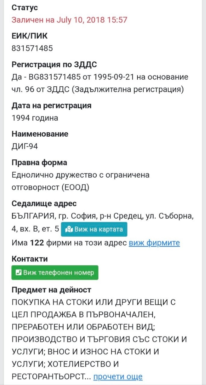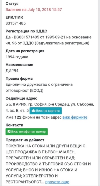 Фирмата е ДИГ 94 ЕООД. Дружеството е създадено през 1994 година от бившия шеф на групировката ВИС Васил Илиев и един от най - приближените му, Димитър Димитров-Маймуняка. Адресът на управление е в София, район Средец, ул. Съборна номер 4. В протоколите от общото събрание се вижда, че тя всъщност е дъщерно дружество на ВАИ холдинг, чието име е абревиатурата на Васил Андреев Илиев.