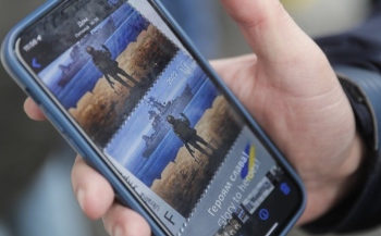 Украинци се наредиха на огромна опашка в центъра на Киев. Те търпеливо чакаха, някои - дори по 6 часа - за да се сдобият с новата марка на "Украински пощи", която изобразява украински войник на фона на крайцера "Москва".