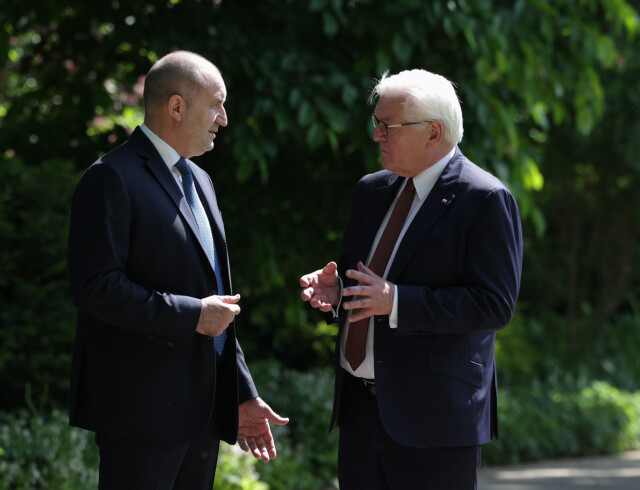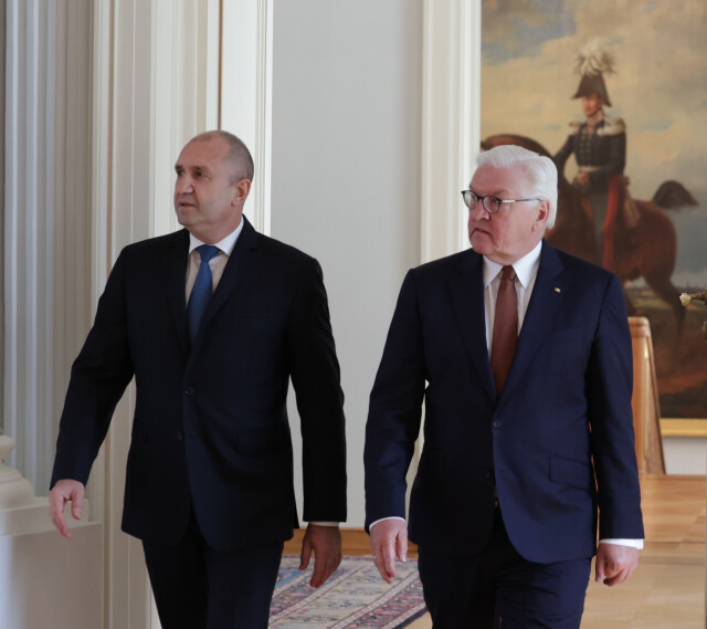 Държавният глава Румен Радев проведе среща на "четири очи" с германския президент Франк-Валтер Щайнмайер в двореца „Белвю“.