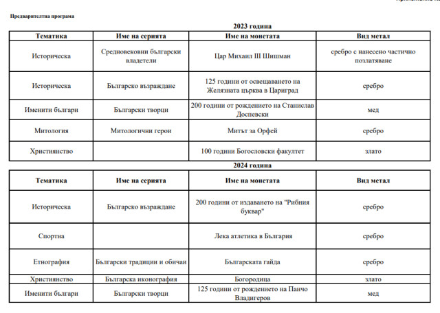 До края на годината нумизматите ще могат да се сдобият с монетата "Паисий Хилендарски - два златни лева", "Голям гмурец" от серията "Природно разнобразие в Република България" и "Средновековни български владетели" от серията "Средновековни български владетели".