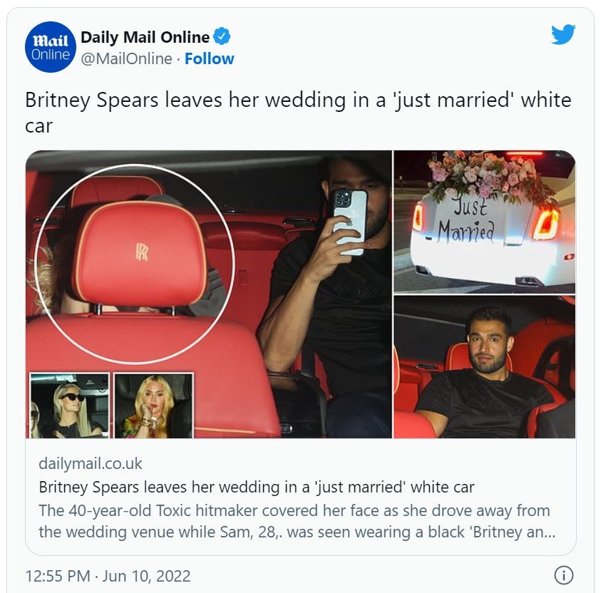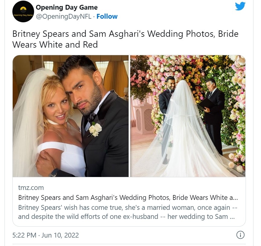 Бритни Спиърс се омъжи за годеника си Сам Асгари, седем месеца след като беше освободена от опеката, която според нея ѝ е пречела да се омъжи.