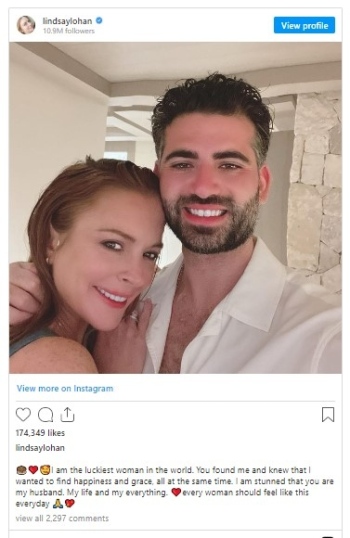 Лошото момиче на Холивуд - американската актриса Линдзи Лоън, се е омъжила тайно. В публикация в Instagram певицата нарича досегашния си приятел Бадер Шамас "моя съпруг". 36-годишната актриса, родена в Ню Йорк, обяви годежа си с 35-годишния Бадер през ноември миналата година. Двамата се срещат от 2020 г.