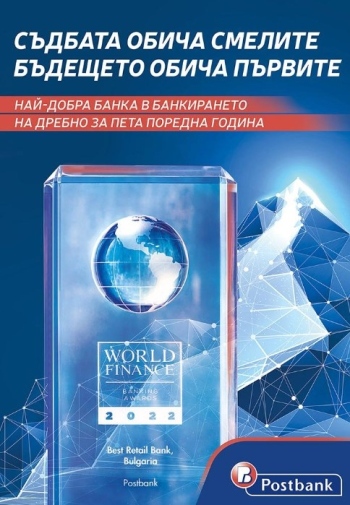 Пощенска банка спечели приза за „Най-добра банка в банкирането на дребно в България“ (Best Retail Banks, Bulgaria) за пети пореден път в конкурса World Finance Banking Awards през 2022 г. Организатор на престижните награди, които бяха обявени в края на месец юли, е авторитетното международно издание World Finance, което следи и анализира световната финансовата индустрия, бизнес и икономика. Устойчивата корпоративна политика на Пощенска банка, богатото портфолио от продукти и услуги, даващи добавена стойност, широката клонова мрежа, в съчетание с водещата ѝ позиция в сектора по отношение на подхода към иновациите, са сред предимствата, които открояват финансовата институция сред най-добрите на глобално ниво. Ключов аспект за силното лидерство и успеха на банкирането на дребно, което Пощенска банка демонстрира през годините, се оказва и високото доверие от страна на клиентите, което свидетелства още за богатата дългогодишна експертиза на институцията.