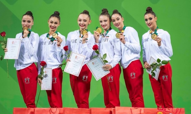 Това е второ злато за ансамбъла на България от Световното в София след абсолютната титла в многобоя. Отборът е дебютант на форум от такъв ранг, като това бе и първото състезание на този състав пред родна публика, пише sportal.bg.