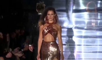 За финал Том Форд бе избрал секси рокли с пайети, представени от Бела и Джиджи Хадид под звуците на "Time" на Фреди Мъркюри. Творенията на дизайнера са с дълбоко изрязани цепки. Булката също блестеше в златисто със също толкова ослепителен букет.