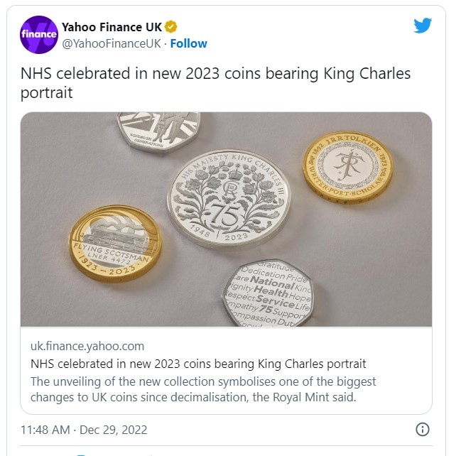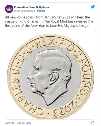 Колекционерите ще станат свидетели как Великобритания преминава от лика на кралица Елизабет Втора към портретното изображение на новия крал. Всички нови монети, отсечени от 1 януари 2023 година, ще носят лика на крал Чарлз Трети.
