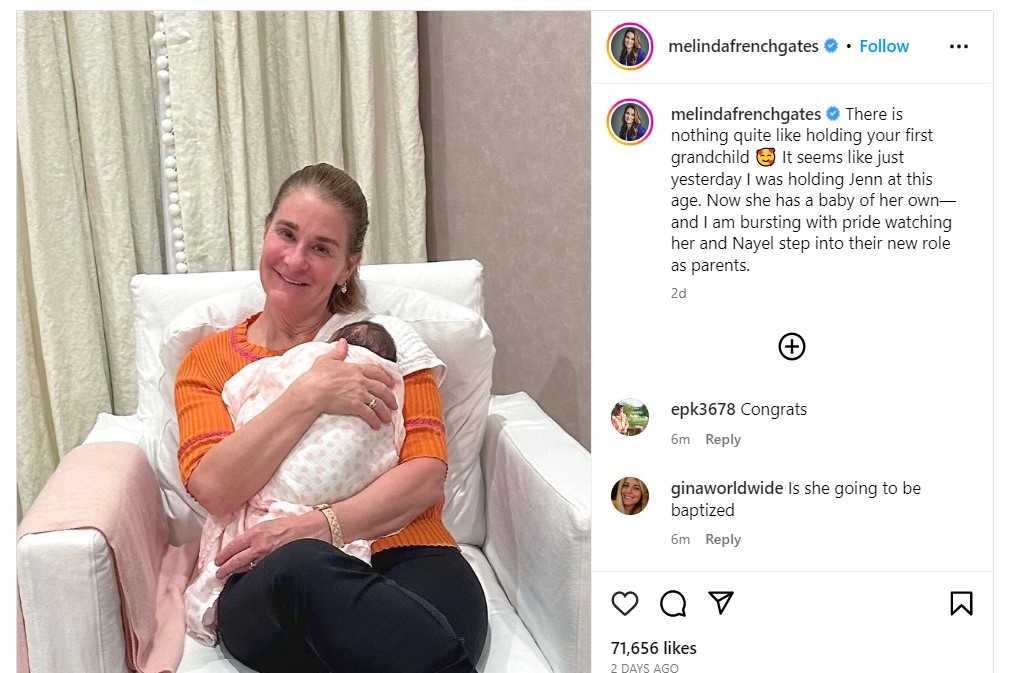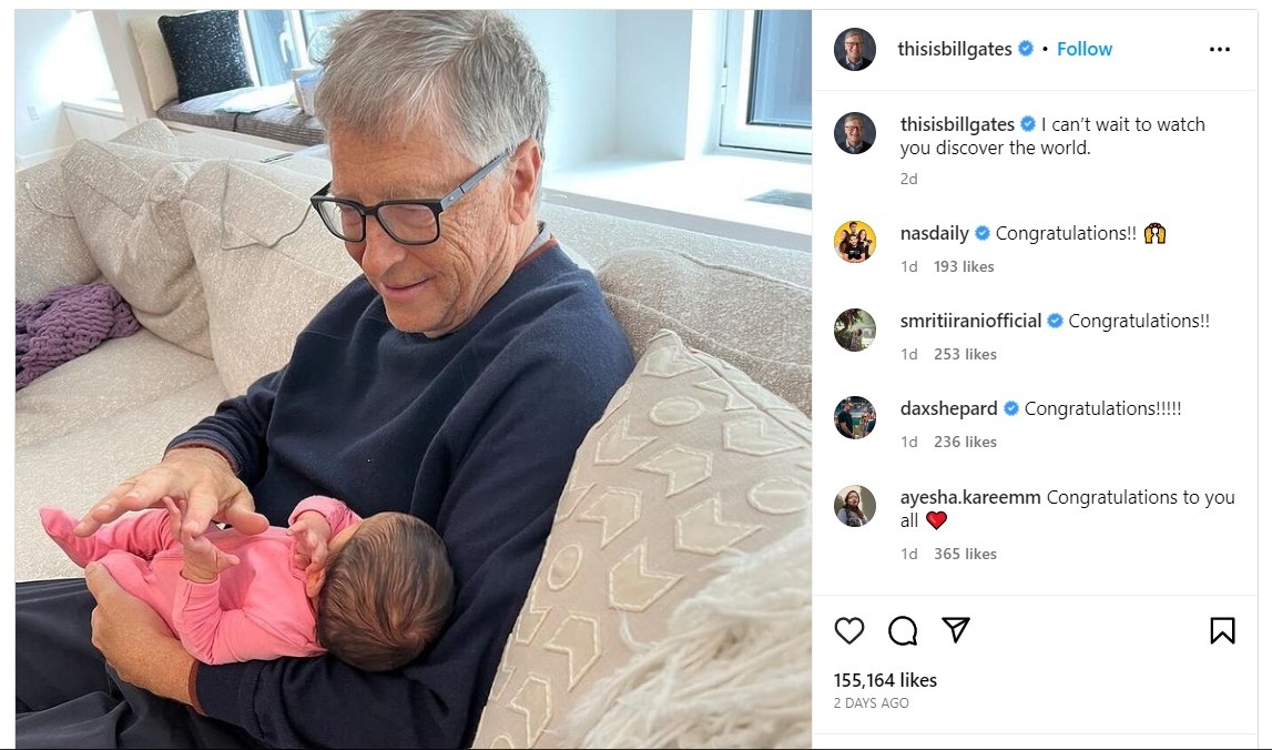 Бил Гейтс публикува снимка с първата си внучка.