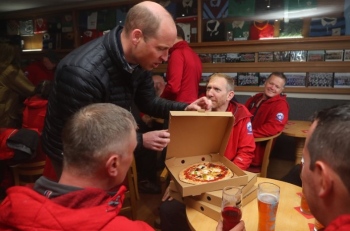 Двамата са на визита в Уелс, където посетиха планинския спасителен екип в Националния парк „Брекън Бийкънс”. Неговите членове рискуват живота си, за да помагат на катерачите в близката планинска верига.