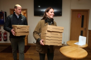 Принцът и принцесата на Уелс зарадваха отбор по ръгби с необичайна доставка. Двамата донесоха кутии с пици на клуба в Даулаис, където се срещнаха и с членове на местната общност.