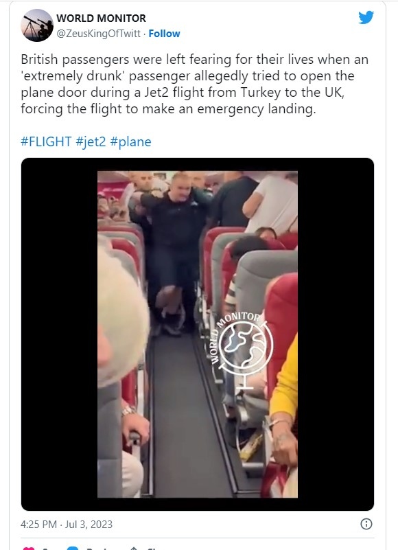 Инцидентът е станал 10 минути след излитането на самолета и на Антъни се е наложило да се бори около един час с пияния мъж до аварийното кацане, като помощ са му оказали само две от стюардесите. Изданието е качило видео от ареста на мъжа, за когото се смята, че е шотландец от Глазгоу. Вижда се как той оказва съпротива на българските полицаи, които го измъкват от самолета под гневните викове на пътниците.