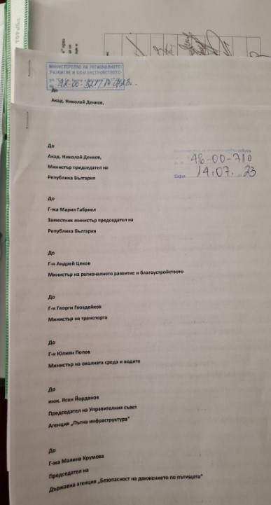 Подписката ще бъде изпратена и до председателите на Комисиите по регионално развитие, транспорт и екология в Народното събрание.