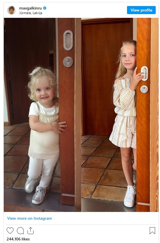 Комикът напоследък започна да публикува семейни снимки в социалната мрежа като сега обърна по-голямо внимание на порасналата си дъщеря. Галкин пусна колаж от два фотоса, първият от които е направен в ранното детство на момичето, а втория е актуален. Русото ангелче повтори архивния кадър. Тя позира на същото място и в подобен тоалет. А феновете на артистичната двойка са категорични, че Лиза расте като копие на Алла.