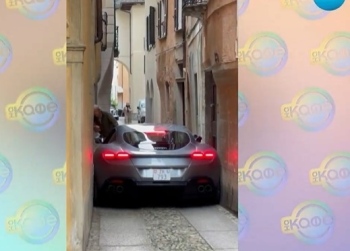 Любопитно клипче обиколи интернет. На него се вижда Ferrari Roma на стойност около 200 хиляди евро, заклещено в тесните улички на Орта Сан Джулио, разположен на около 100 км североизточно от Торино.