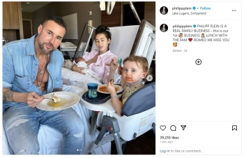 "Phillip Plein" е истински семеен бизнес! Това е първият ни работен обяд заедно", шеговито написа гордият баща, допълвайки, че Ромео Принс им липсва.