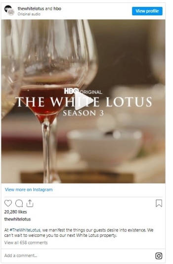 Припомняме, че първи сезон се развиваше в хотел от веригата Белият лотос в Хавай, а втори - в Сицилия. Третият сезон ще ни пренесе в Тайланд, а водещата тема ще е смъртта. В първи сезон тя беше парите, а във втори - сексът.