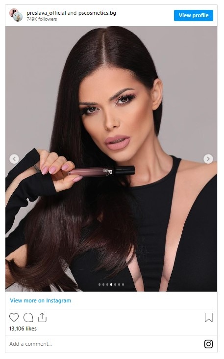 "Време е да откриеш новото си любимо матово червило – непоклатимо съчетание от страхотен цвят и ухание"!, написа тя в профила си в социалните мрежи.