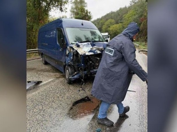 Ударът е между лек автомобил и микробус.