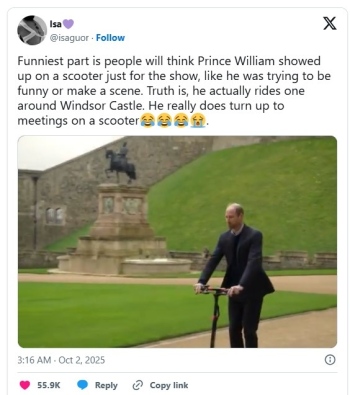 Докато водеше Леви из залите на Уиндзор, принц Уилям пристигна на срещата със своята електрическа тротинетка – обичайно средство за придвижване из територията на двореца. По време на обиколката разговорът премина естествено към теми като историята на институцията, нейните традиции и очакванията към наследника на трона