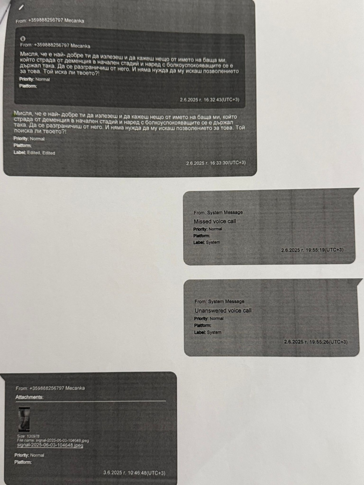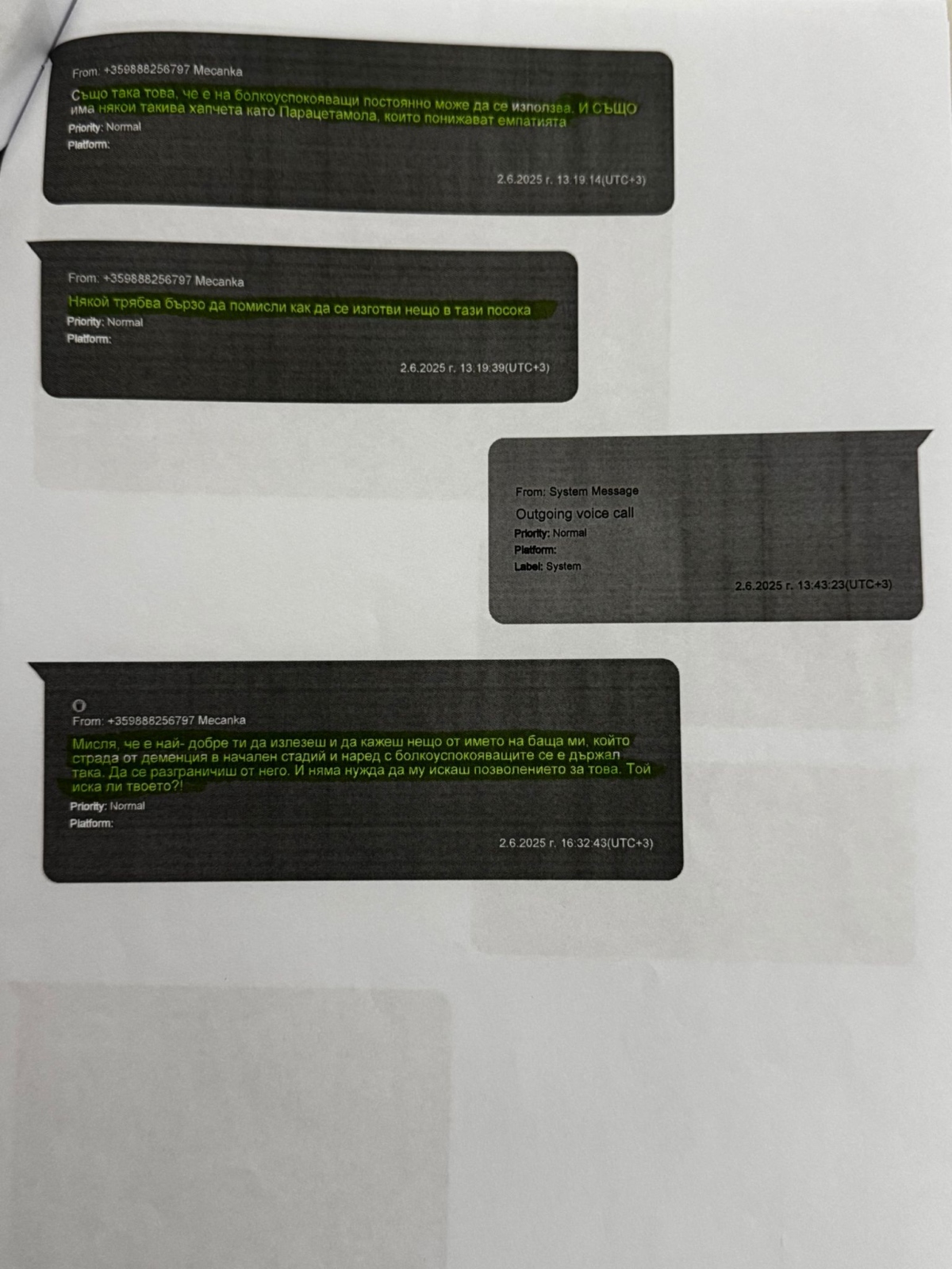 Разпечатка от Вайбър: „Да го изкараме с деменция”