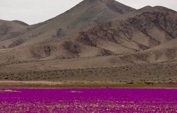 Над 200 различни вида диви цветя са покрили земята с пъстър „жив килим“, видим от километри. Снимки и кадри от високо показват пейзаж, който изглежда като от фантастичен филм – море от цветове, където доскоро е имало само прах и камъни.