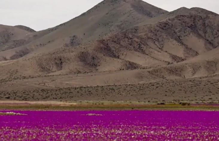 Едно от най-суровите и безмилостни места на планетата – Атакамската пустиня в Чили – се е превърнало в неочаквано и хипнотизиращо цветно чудо. Обикновено обгорена от слънцето, безжизнена и прашна, тази година пустинята буквално цъфти.