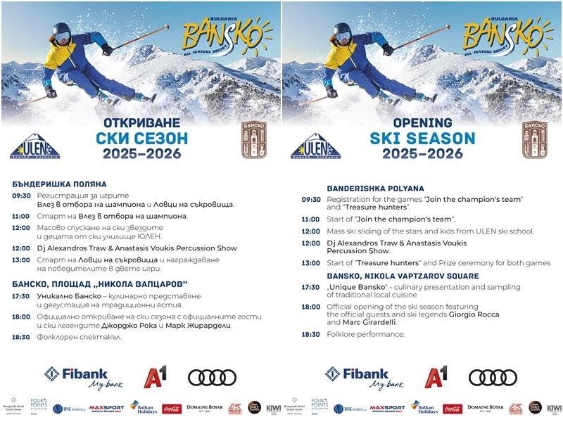 На 13 декември 2025 г. (събота) в Банско ще бъде даден старт на новия зимен сезон 2025/2026 г. И тази година откриването ще бъде на Бъндеришка поляна, където ще се съберат стотици запалени планинари, скиори и гости на града.