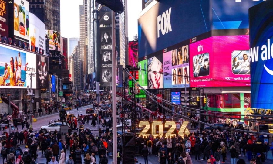 След като кристалната топка на „Таймс скуеър“ в Ню Йорк отбележи настъпването на 2026 година, тя ще се издигне отново, блестяща в червено, бяло и синьо, за да даде старт на множество празненства за предстоящата 250-годишнина на нацията, пише "Асошиейтед прес".