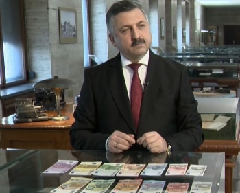 Стефан Цветков - главен касиер на БНБ: "Винаги казваме пипни, наклони и погледни. Какво правим, когато пипаме една банкнота? Прокарваме през хартията, разбира се усещаме нейния звук. Разбира се, тя е от памук и затова лесно се чува нейният звук. Типичен за памучна хартия. Усеща се релеф."