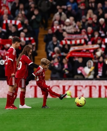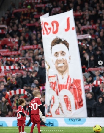 Вчера тя и децата ѝ бяха специални гости на „Анфийлд“ за мача от Висшата лига между Ливърпул и Уулвърхемптън – двата бивши клуба на Жота в Англия. Синовете ѝ бяха част от талисманите, извели футболистите на терена преди срещата.
