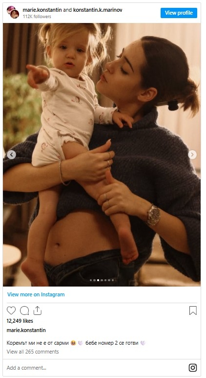 Дъщерята на Гала – Мари Константин, умили последователите си на прага на новата година с щастлива и много лична новина. Само дни след като разкри, че е бременна за втори път, Мари реши да сподели още един вълнуващ момент от семейното си щастие – пола на бебето.