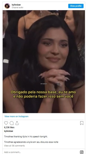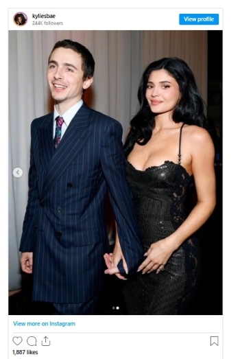 През последните месеци двойката все по-често показва публично връзката си. Те отбелязаха важен момент, когато Кайли подкрепи Тимъти Шаламе на фестивала в Палм Спрингс, а по-късно той за първи път коментира нейна публикация в социалните мрежи, оставяйки емоджита със сърца под нейна снимка.