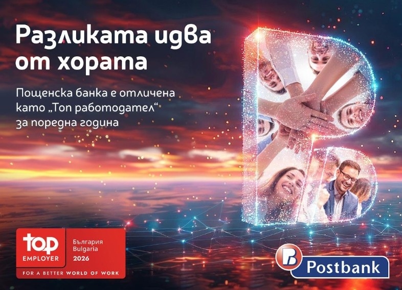 „Престижният сертификат от международния и независим Top Employers Institute е признание за нашата културна идентичност, която устойчиво развиваме, за да запазим мястото си сред най-добрите и предпочитани компании за работа в света. Стратегическият ни фокус върху хората, културата и развитието дава реални резултати. Вярваме, че истинската трансформация започва отвътре – с нашите екипи, тяхната ангажираност, увереност и желание да растат. Благодарим на всички колеги, които всеки ден допринасят за това Пощенска банка да бъде място, където се създава бъдеще с грижа, смисъл и визия“, коментират от Пощенска банка.