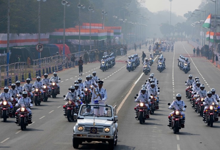 Парадът започна с приемането на строя от президента Драупади Мурму, малко след като тя, Коща и Фон дер Лайен, придружени от телохранителите на индийския президент, пристигнаха на „Картавя Патх" в традиционна открита каляска.