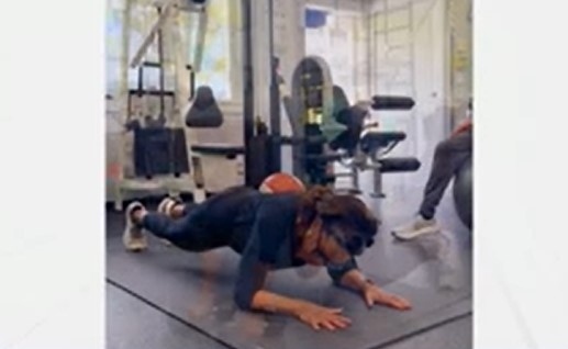 Звездата демонстрира физическа форма, като вдига тежести и прави още много упражнения.