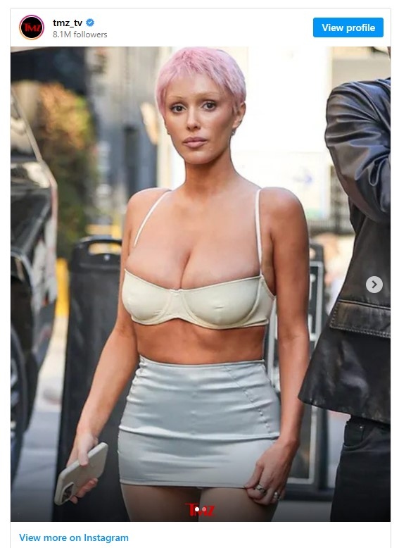 Освен дръзкия цвят на косата, Бианка отново шокира с разголеното си облекло. Тя беше облечена в бял сутиен, който подчертаваше деколтето и изваяния ѝ корем, комбиниран със сребърна мини пола. Визията беше допълнена от бели чорапи и високи токчета – комбинация, която привлече вниманието на папараците.