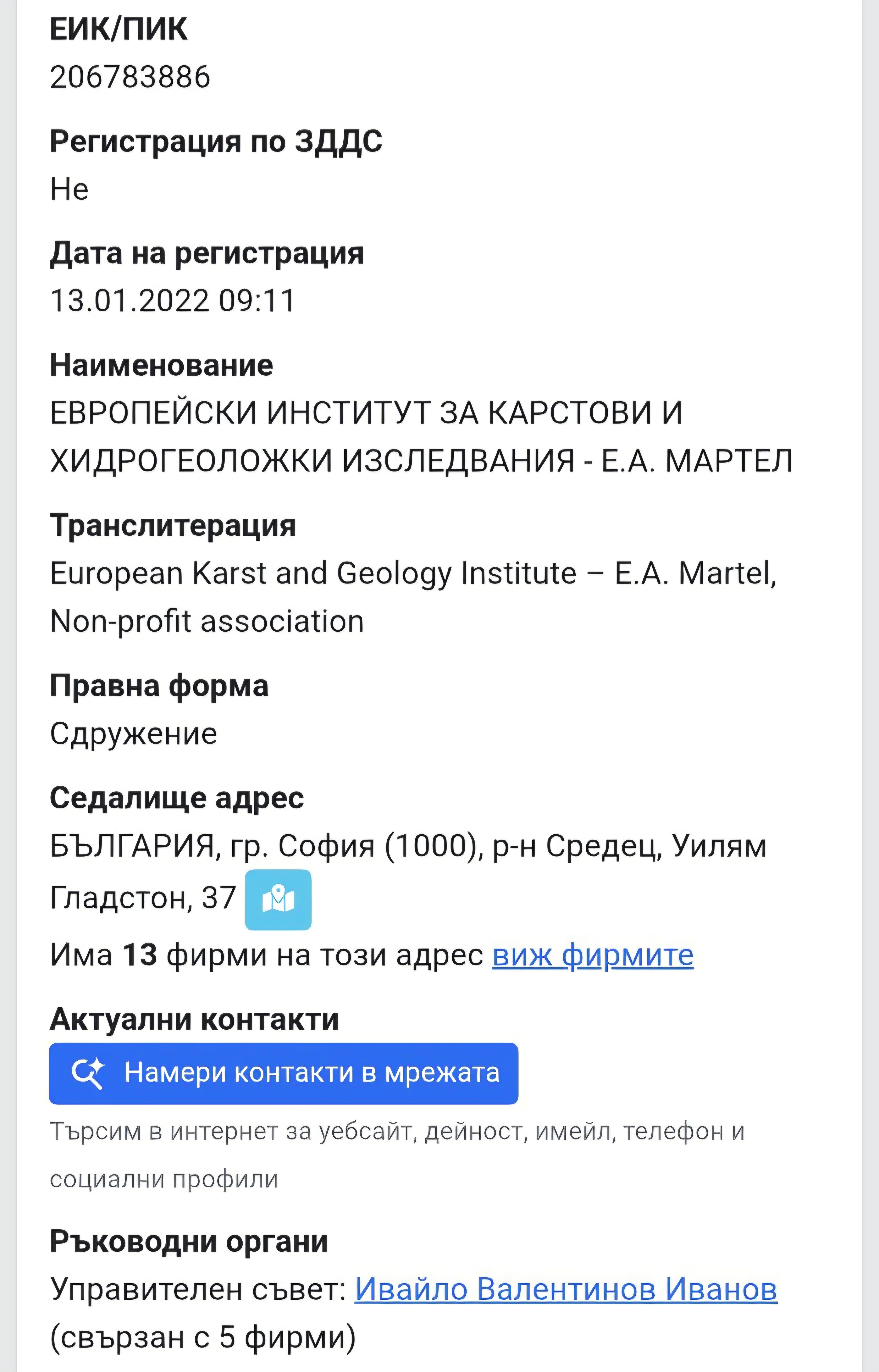 Тя е с наименование, което също заблуждава – „Европейски институт за карстови хидрогеоложки изследвания – Е.А. Мартел“.