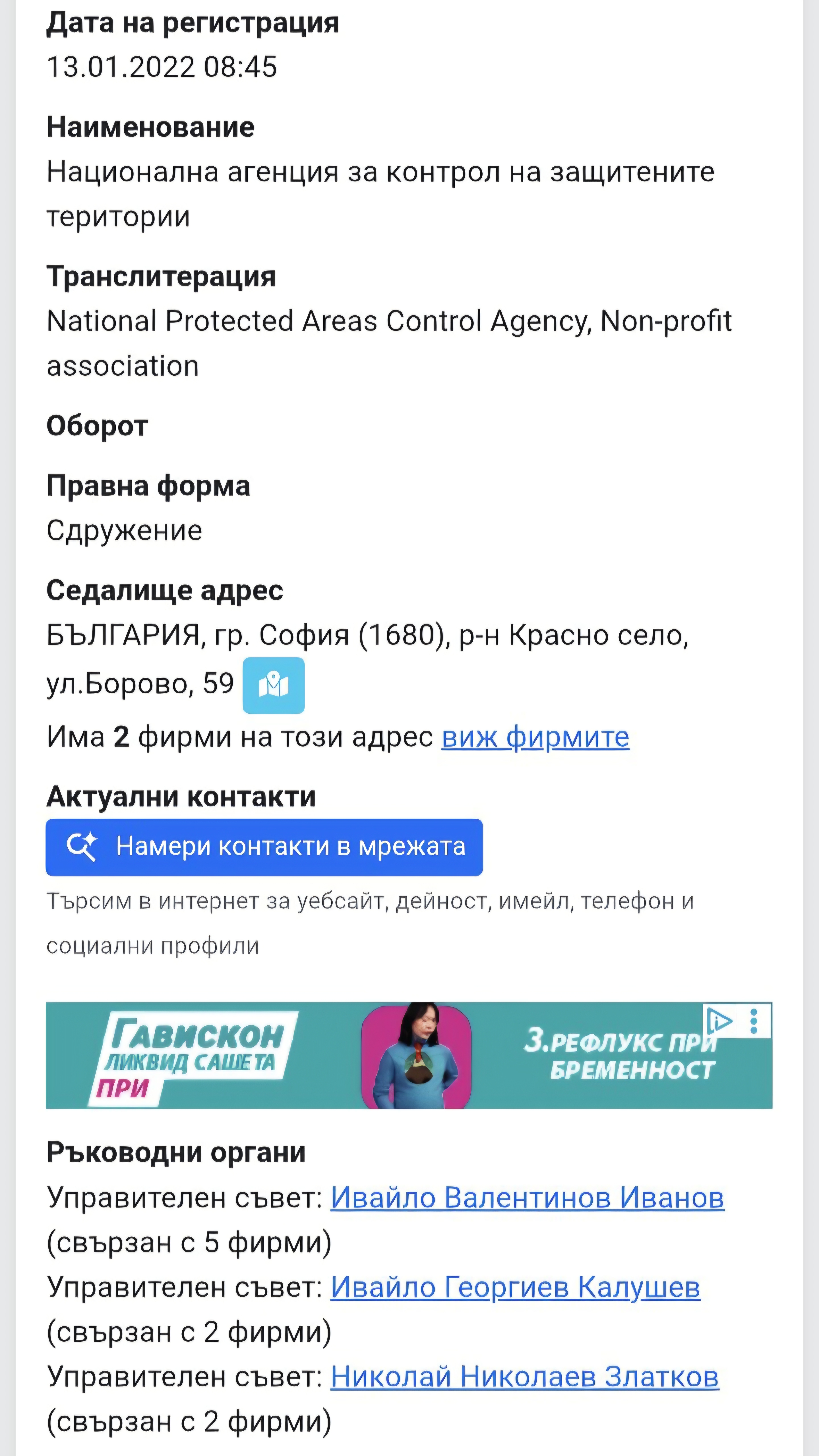 На същия ден – 13 януари 2022 г., когато е вписана Националната агенция за контрол на защитените територии – но в 09:11 часа, само 26 минути по-късно, Агенцията по вписванията регистрира още една – трета неправителствена организация, собственост на Ивайло Иванов – Ивей.