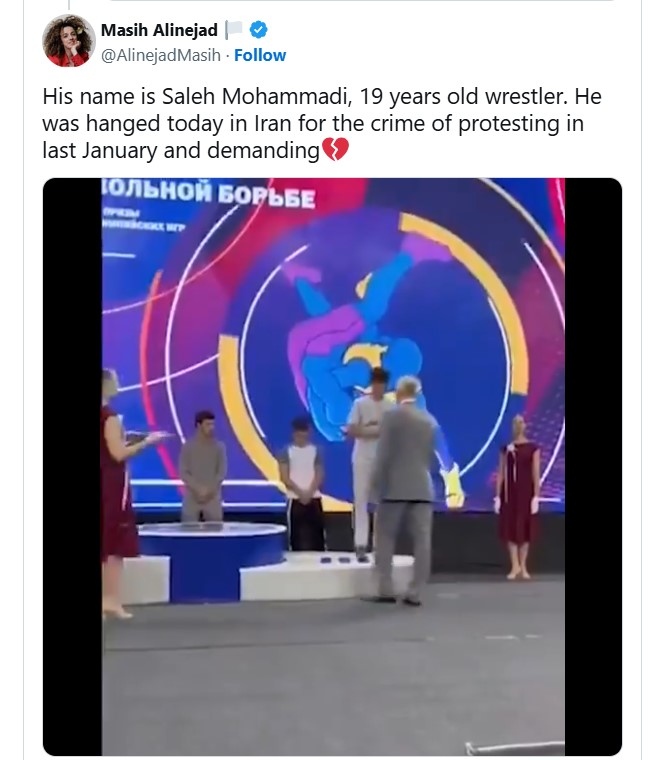 Иранските власти публично обесиха Салех Мохамади, 19-годишен борец, който някога е представлявал страната си на международно ниво и който беше задържан за предполагаемо участие в протестите, разтърсили страната миналия януари.