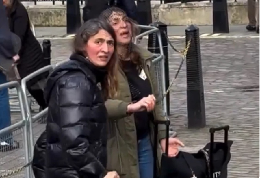 Те бяха заснети, а видеата пуснати в социалните мрежи, как двете сестри крещят под прозорците на абатството по време на официалната служба за Деня на Британската общност.